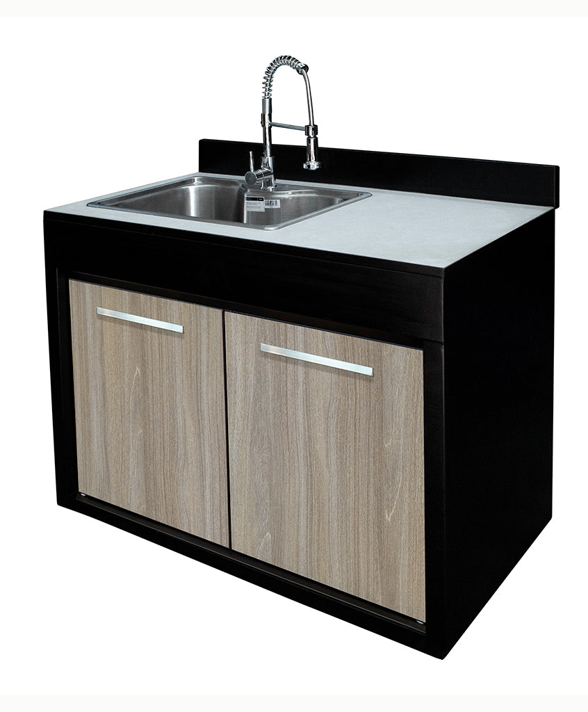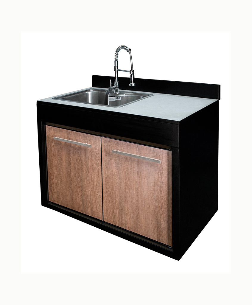 Módulo lavacopas de un cuerpo , con una puerta de superficie Termolaminado y respaldo mural, tazón con llave monomando y cuello cisne giratorio (incluye desagüe), de fácil instalación y tamaño adecuado para cualquier espacio preferentemente interior o bajo techo.