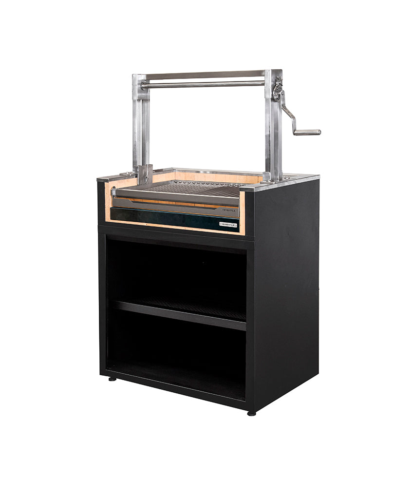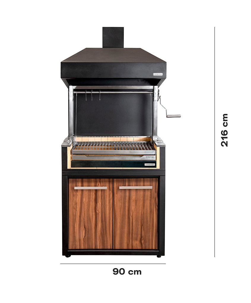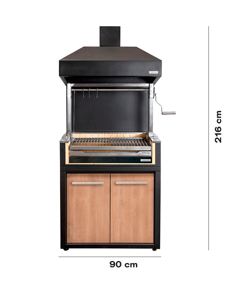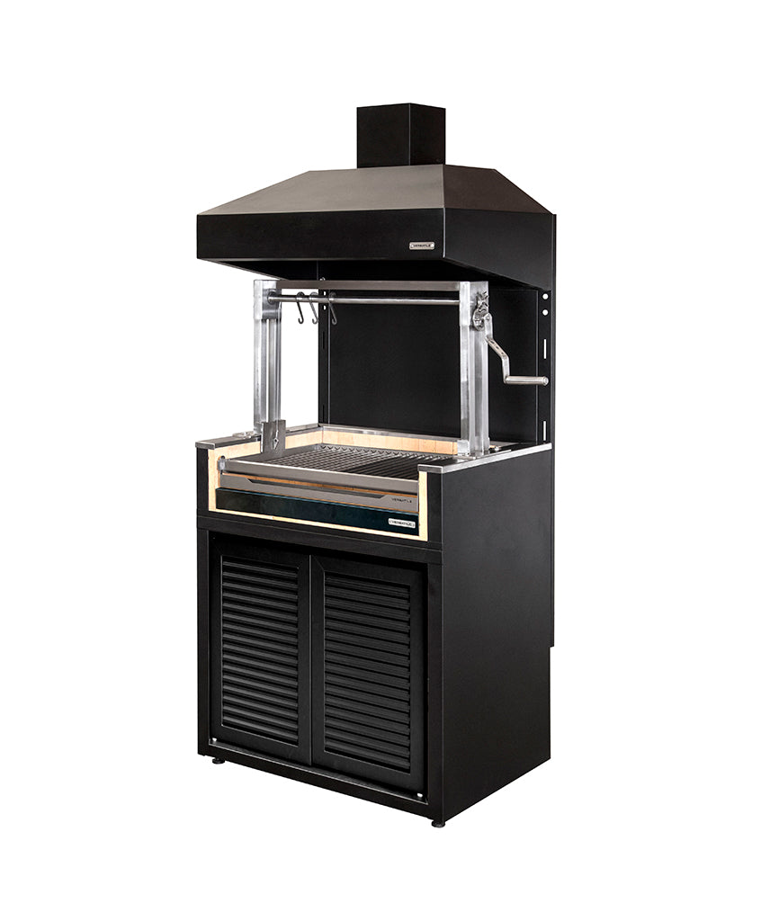 Convierte cualquier espacio en un punto de encuentro gastronómico con nuestro módulo de parrilla a carbón, en dos tamaños, con o sin campana, con o sin puertas en distinta materialidad totalmente personalizado a tu elección según tus necesidades. La versión con campana incorpora extensión que cubre el muro o superficie posterior de la parrilla. Su diseño modular y de fácil y rápida instalación te permite integrarlo sin complicaciones en terrazas, quinchos y patios exteriores o interiores, solo necesitas una superficie sólida y estable para su disposición.