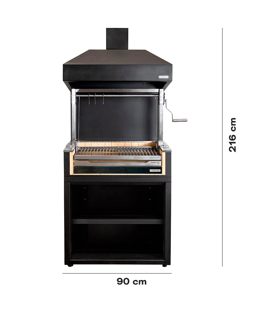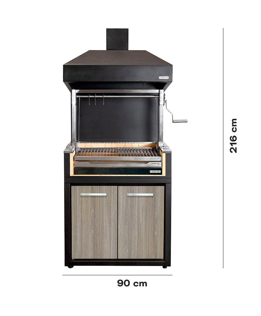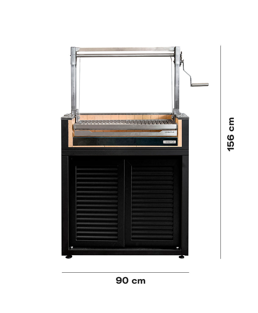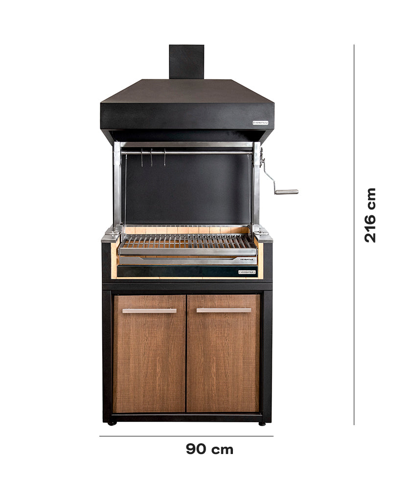 Convierte cualquier espacio en un punto de encuentro gastronómico con nuestro módulo de parrilla a carbón, en dos tamaños, con o sin campana, con o sin puertas en distinta materialidad totalmente personalizado a tu elección según tus necesidades. La versión con campana incorpora extensión que cubre el muro o superficie posterior de la parrilla. Su diseño modular y de fácil y rápida instalación te permite integrarlo sin complicaciones en terrazas, quinchos y patios exteriores o interiores, solo necesitas una superficie sólida y estable para su disposición.