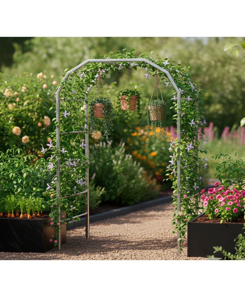 Al ser resistente a la intemperie, un arco de acero se mantiene impecable a través de las estaciones. Con este simple añadido, tu jardín adquiere un nuevo carácter, funcionalidad y un punto focal de belleza natural que invita a todos a detenerse y admirar.