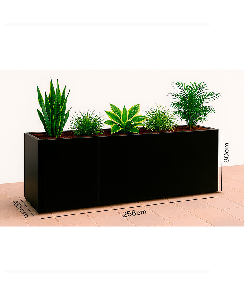 Ideal para plantas naturales o decoraciones artificiales, estas jardineras aportan vida, orden y carácter a tus espacios. Fabricadas en acero galvanizado recubierto con varias capas de zinc que ofrece protección contra la oxidación a causa de las condiciones de humedad e inclemencias del clima. Pintados con pintura electrostática para soportar la intemperie, humedad y rayos UV, asegurando una larga vida útil con mínimo mantenimiento. Fácil de transportar, armar y montar.