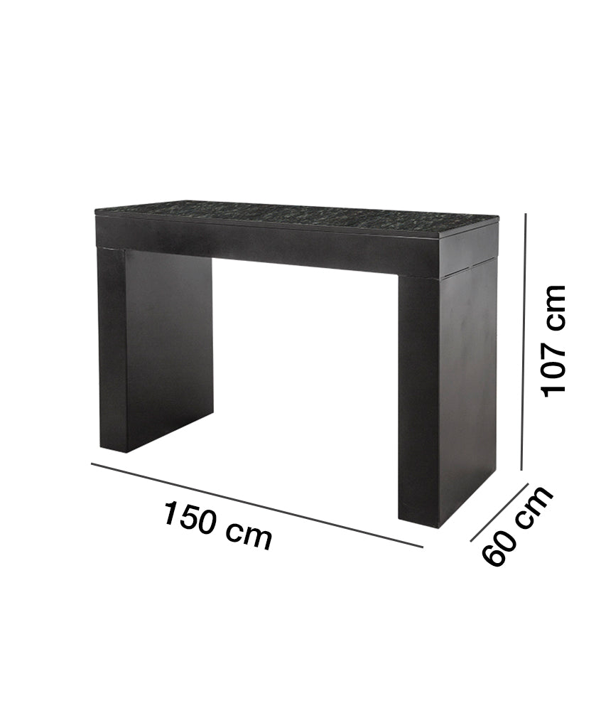 Excelente Barra alta para compartir con los amigos y acompañar al parrillero con estructura en acero laminado color negro mate y cubierta en granito negro, de fácil instalación y tamaño adecuado para cualquier espacio exterior o interior.