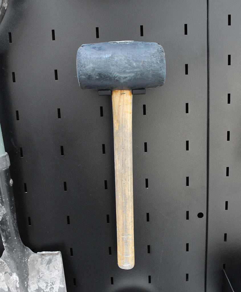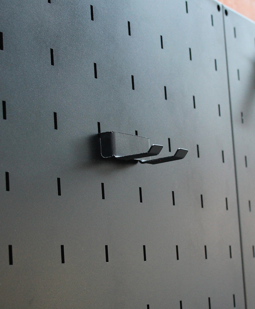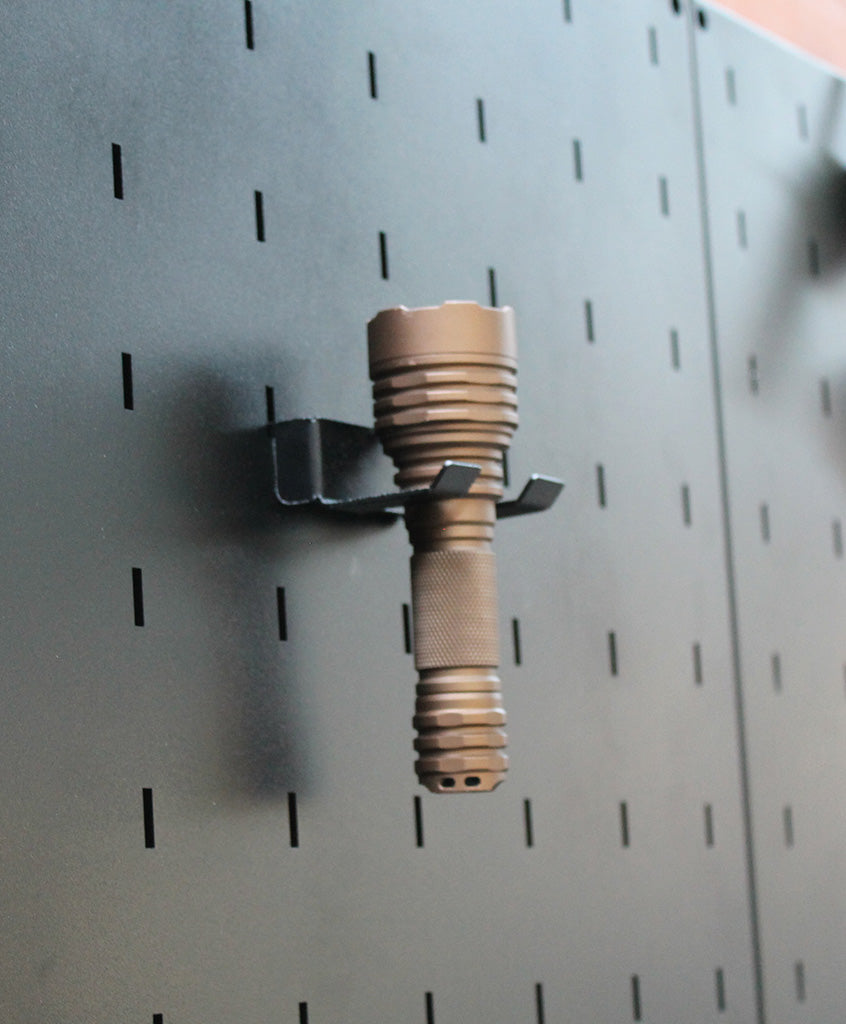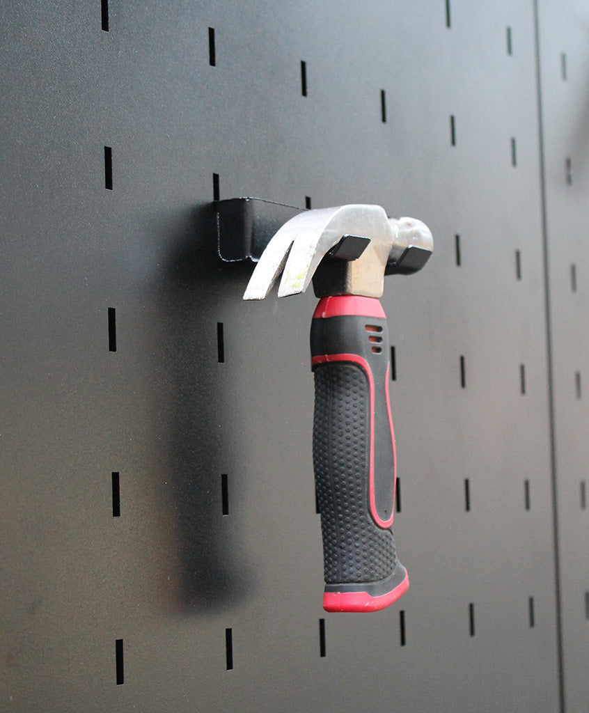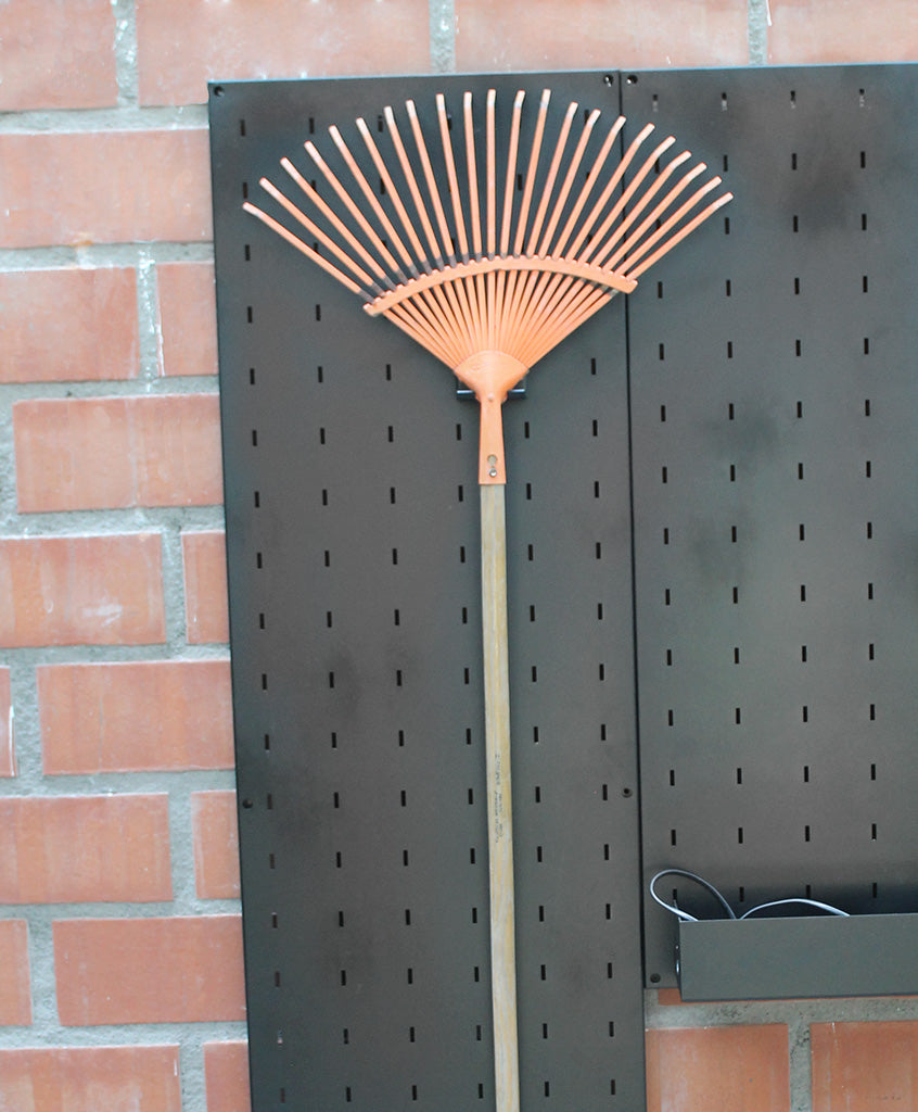Por su diseño es ideal para guardar herramientas con mango, como pequeñas palas y martillos. También es excelente para organizar todo tipo de carretes de pesca.