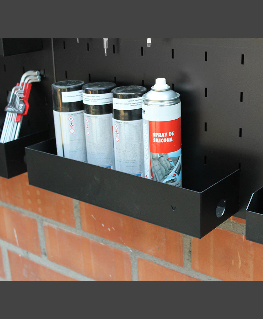 Ideal para guardar latas de pintura, botellas, fertilizantes, munición de gran calibre, herramientas de mayor tamaño, botellas de vino, conexiones, insumos eléctricos, etc.