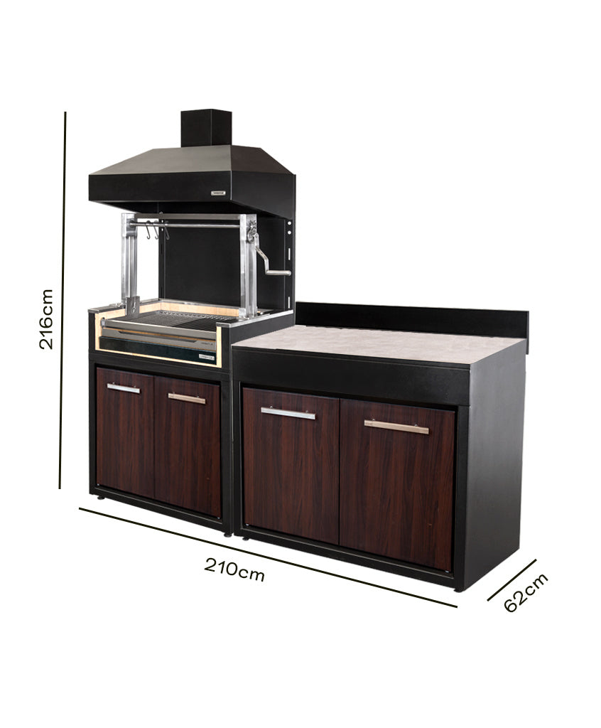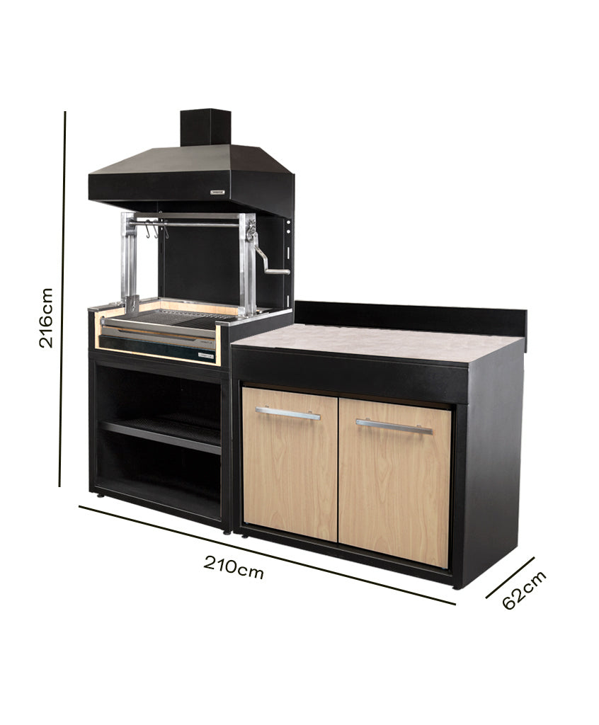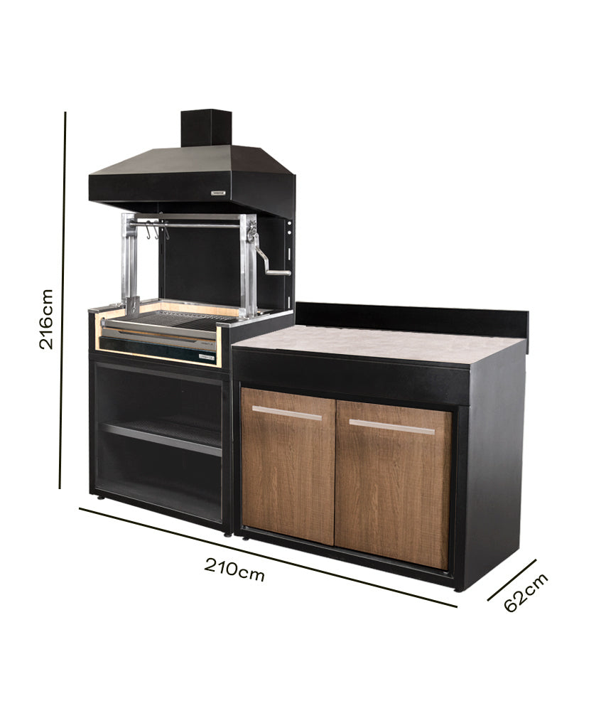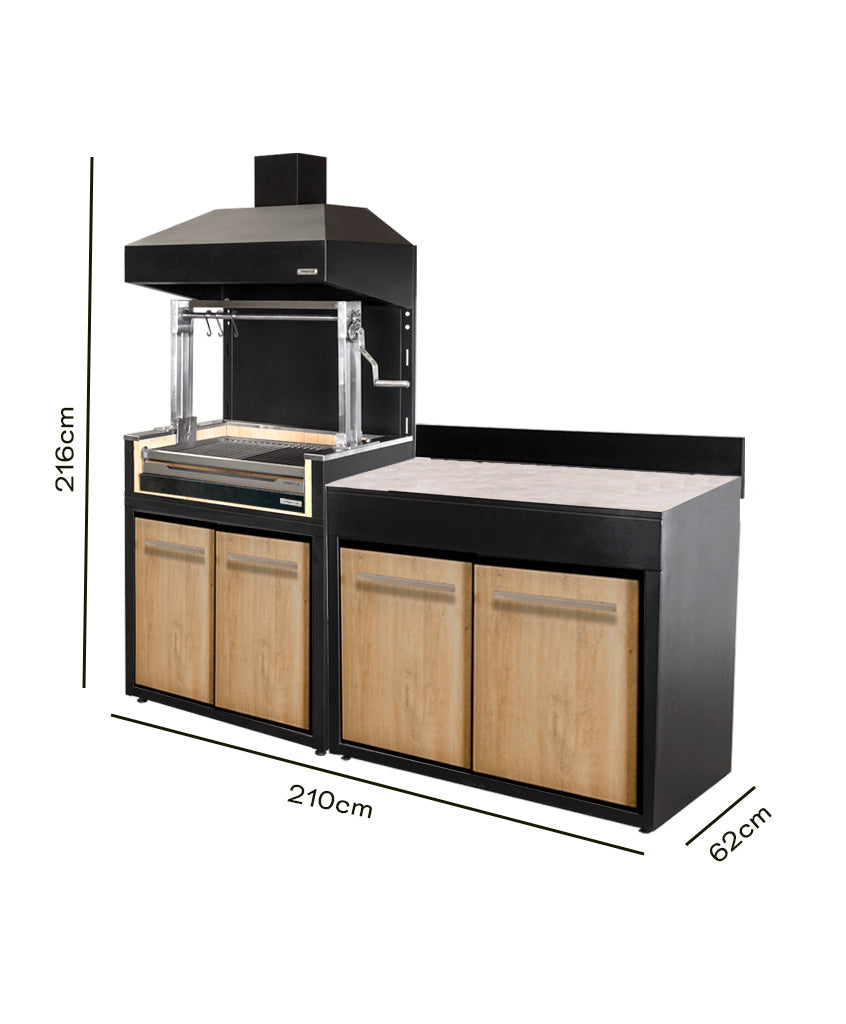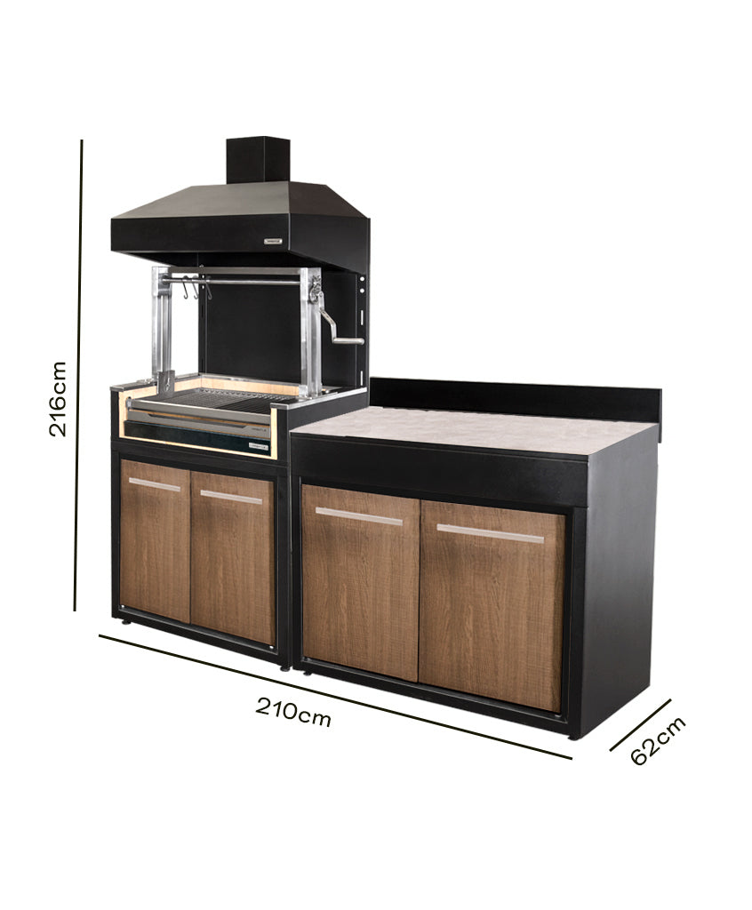 Lleva tu experiencia parrillera al siguiente nivel con nuestro exclusivo pack de módulo parrilla carbón, la combinación perfecta para los amantes de los asados que gustan disfrutar de todo el sabor del carbón tradicional junto a un mueble de apoyo en una misma solución.