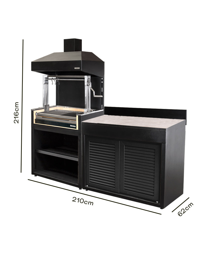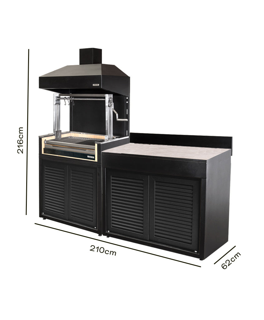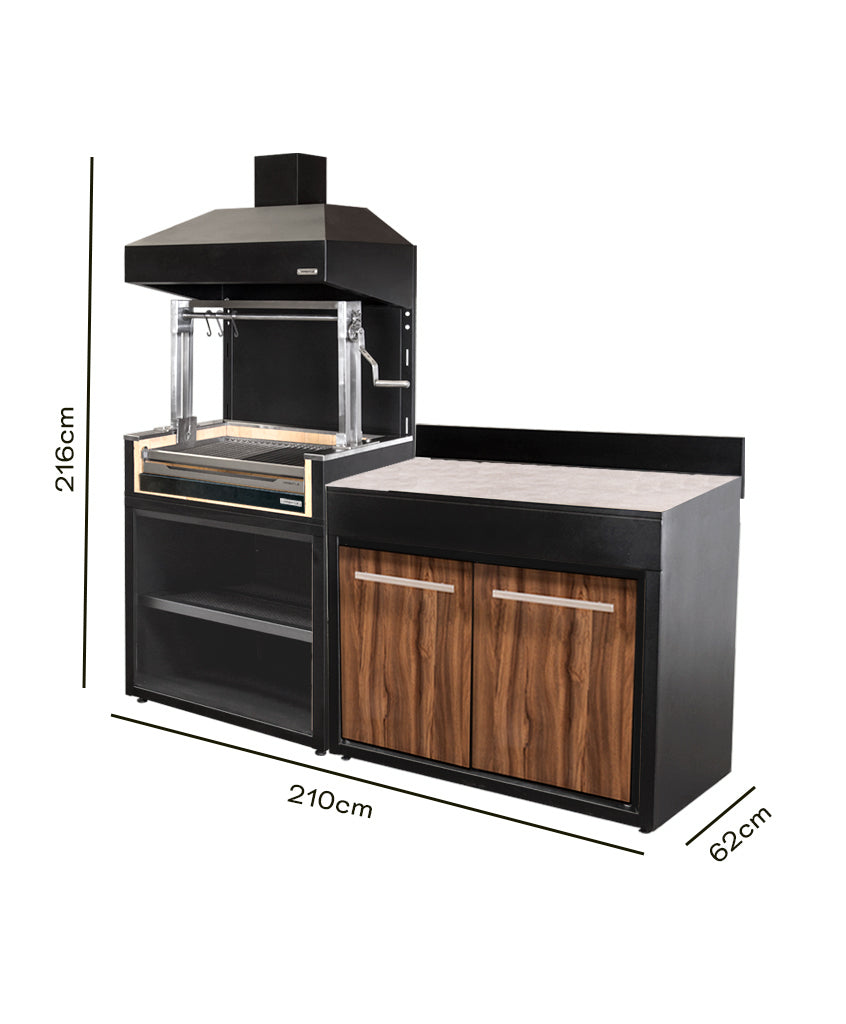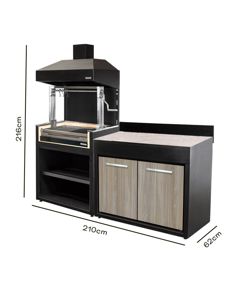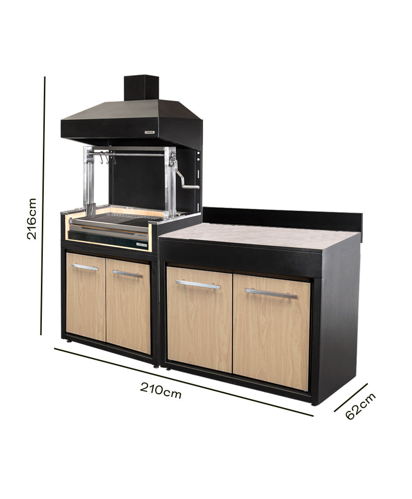 Lleva tu experiencia parrillera al siguiente nivel con nuestro exclusivo pack de módulo parrilla carbón, la combinación perfecta para los amantes de los asados que gustan disfrutar de todo el sabor del carbón tradicional junto a un mueble de apoyo en una misma solución.