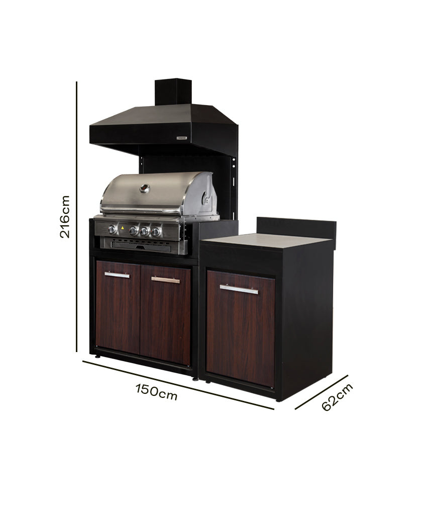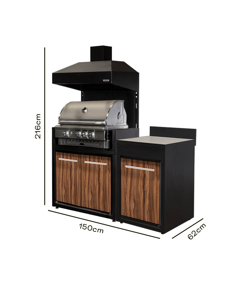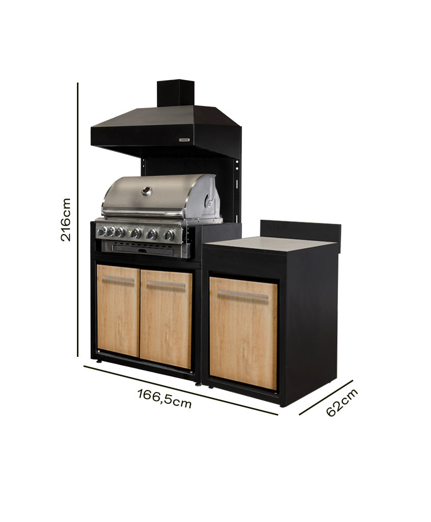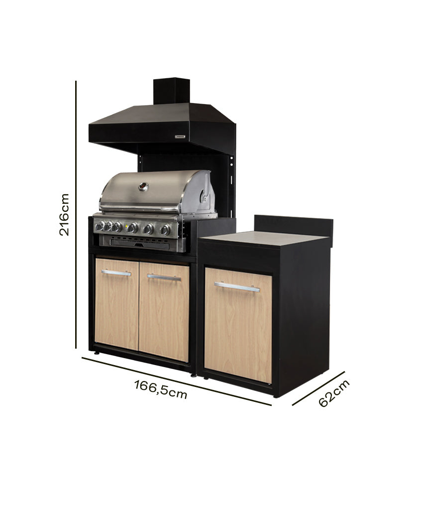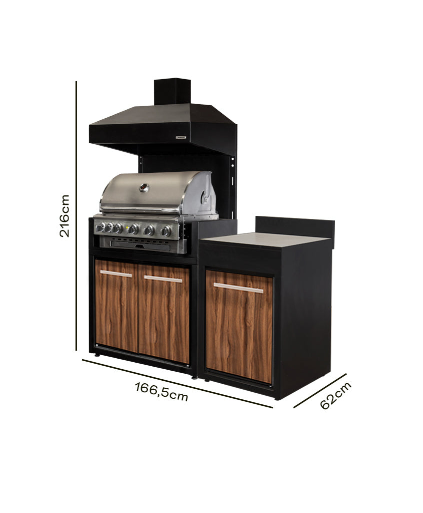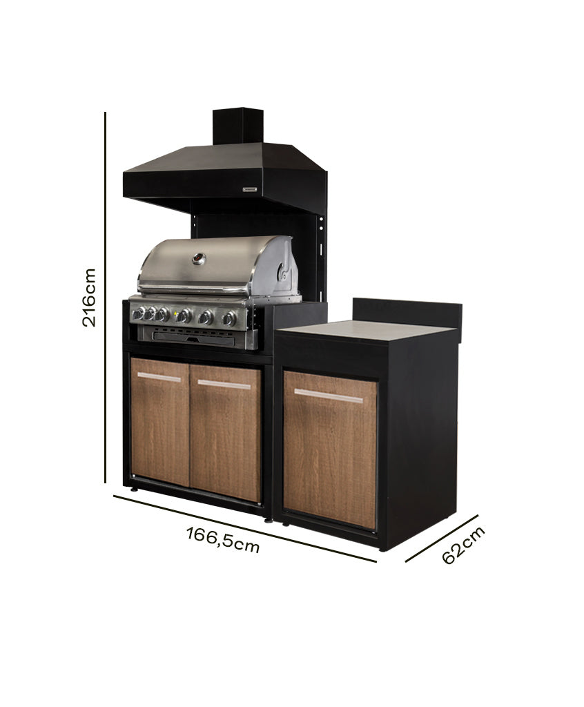Lleva tu experiencia parrillera al siguiente nivel con nuestro exclusivo pack de módulo para parrilla a Gas, junto a un mueble de apoyo en una misma solución. la combinación perfecta para disfrutar de un asado en un espacio cómodo y reducido.