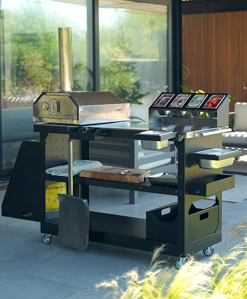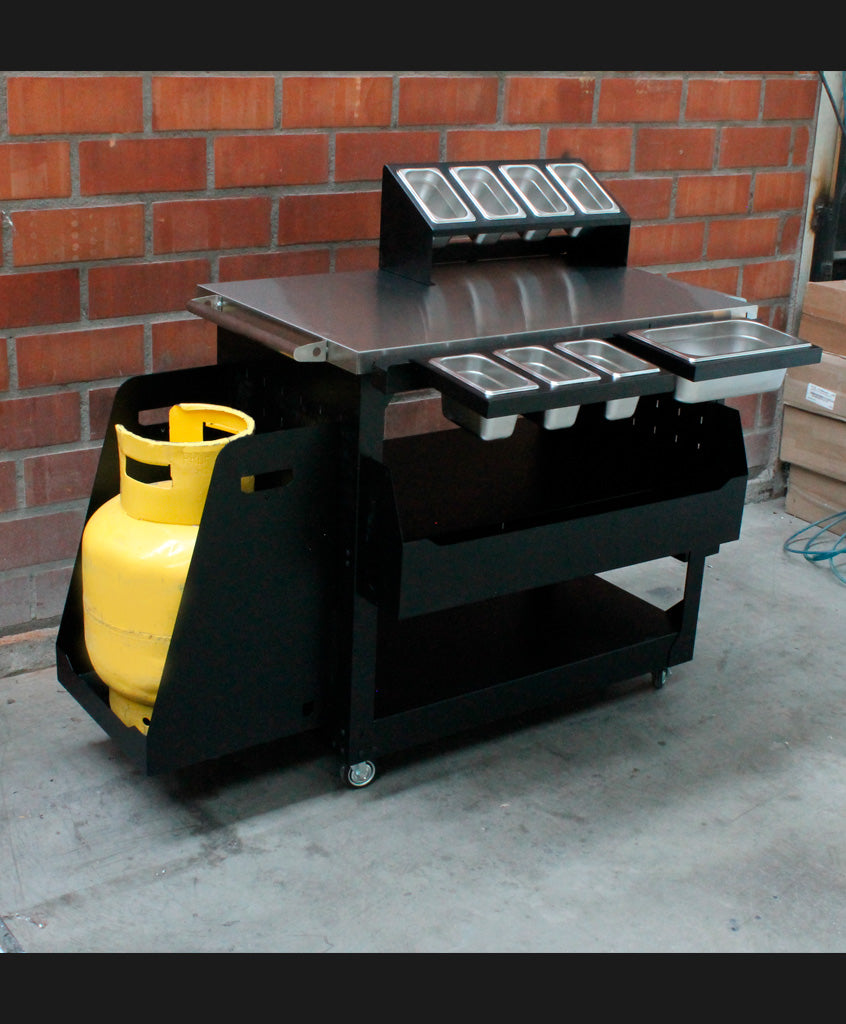 Este accesorio para carro multifuncional es indispensable para quienes hagan sus preparaciones de pizza, para catering, o para utilizar con cualquier equipo a gas.