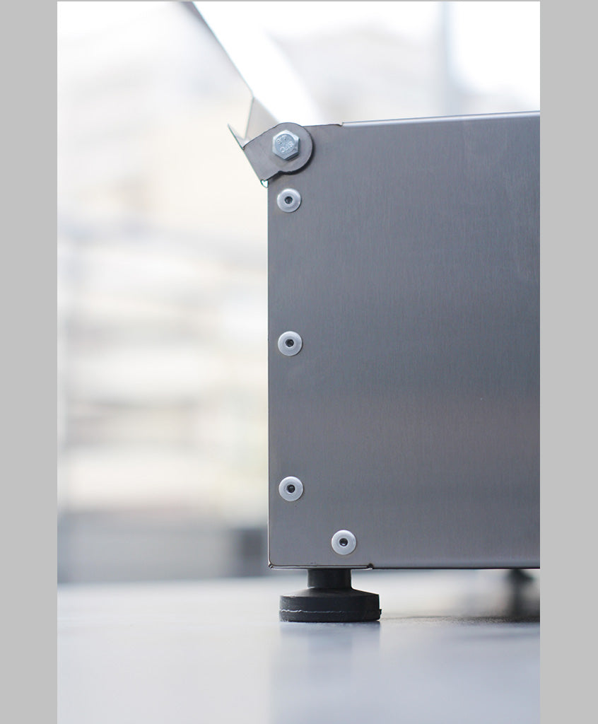 Equipada con soportes de altura ajustable y esquinas soldadas para evitar goteos, facilita su limpieza y mantenimiento garantizando un servicio impecable en todo momento.