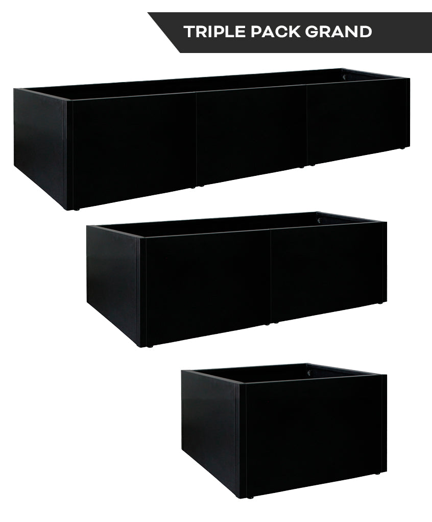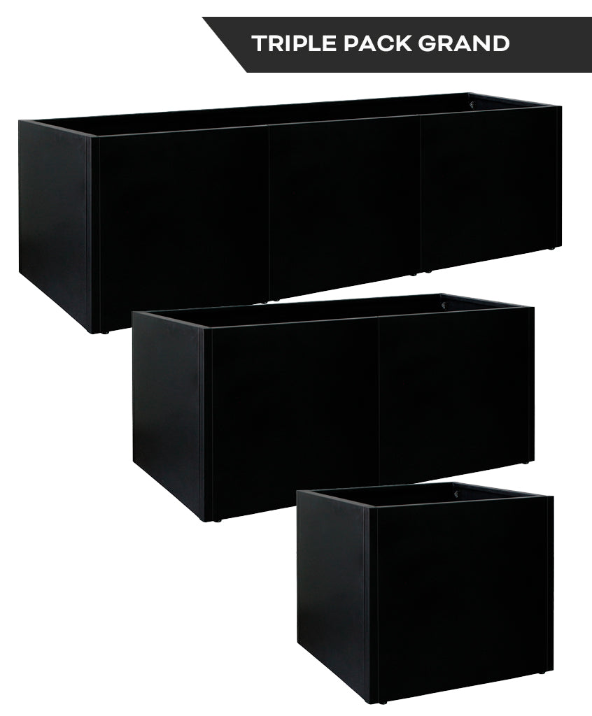Este triple pack ofrece la combinación de maceta con ancho en tres tamaños, todos bajo la misma altura, innovando con la disposición de su ubicación y dando realce a tus plantas